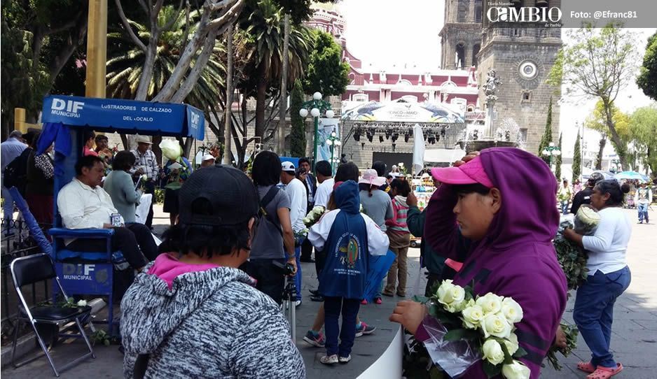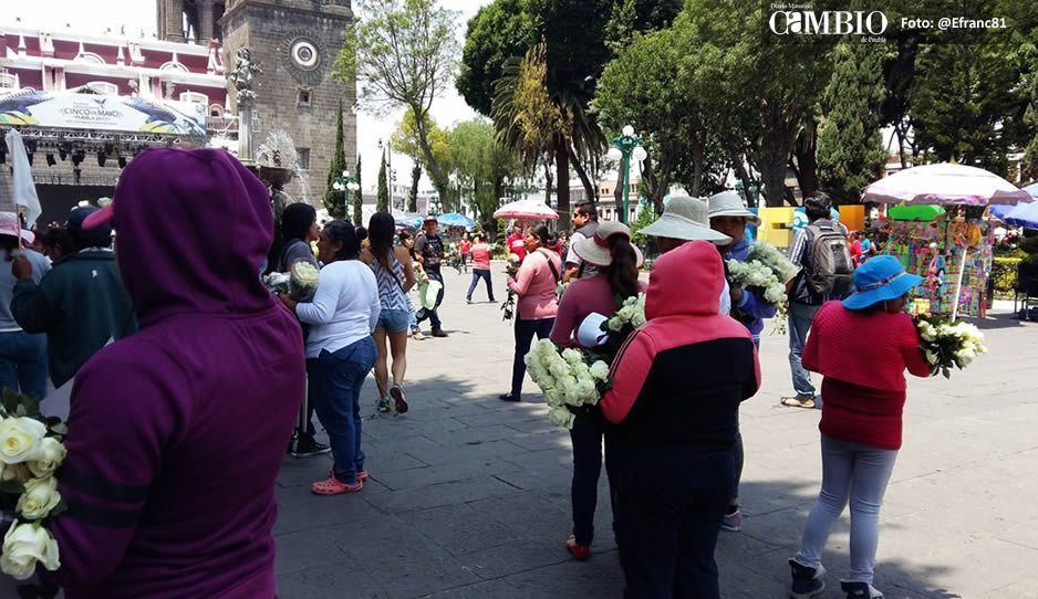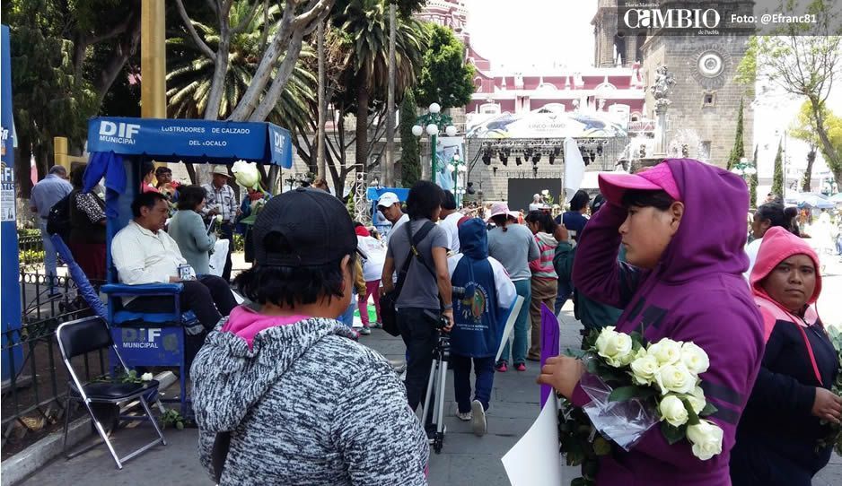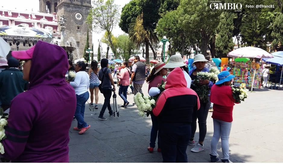 Cerca de 100 pobladores, en su mayoría niños y mujeres, arribaron al primer cuadro de la ciudad a bordo de varias camionetas RAM de modelos recientes para repartir rosas blancas a todas las personas que circulaban por la zona.