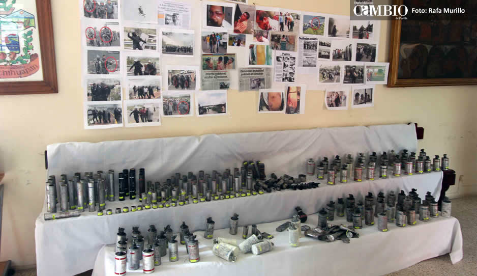 Comentó que todos los proyectiles de balas de goma y gases lacrimógenos que recogieron fueron disparados y lanzados contra los pobladores en la zona de la junta auxiliar, es decir, lejos de la autopista, por lo que la mayoría pudieron ser recolectados por los pobladores para ser presentados como prueba ante la Comisión Nacional de Derechos Humanos.