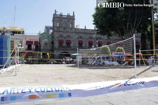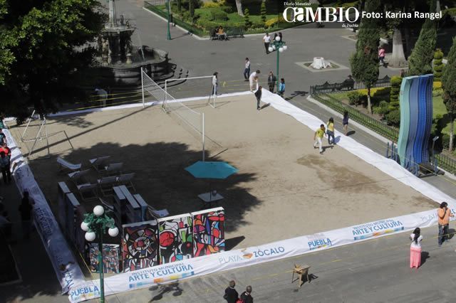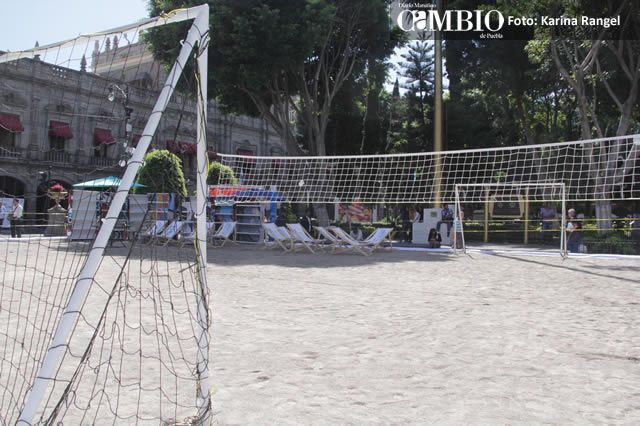 La “Galiplaya” que el alcalde de Puebla instalará en el zócalo capitalino empezó a tomar forma, luego de que este miércoles fue instalada la biblioteca, mesas de descanso y las canchas de fútbol y voleibol playero en el arenero que se ubica a un costado de la fuente de San Miguel. La directora del Instituto Municipal de Arte y Cultura (Imacp), Anel Nochebuena Escobar, supervisó los trabajos y aprovechó para negar que el proyecto sea una medida populista por parte de Antonio Gali Fayad.