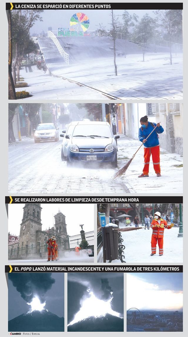 Aunque las autoridades descartaron riesgos que obligaran a la evacuación de los habitantes cercanos al coloso, la lluvia de polvo provocó que el Aeropuerto Internacional Hermanos Serdán, ubicado en Huejotzingo, suspendiera sus actividades en dos ocasiones; mientras que en las escuelas de la SEP y la Universidad Autónoma de Puebla (BUAP), sólo se cancelaron actividades al aire libre.