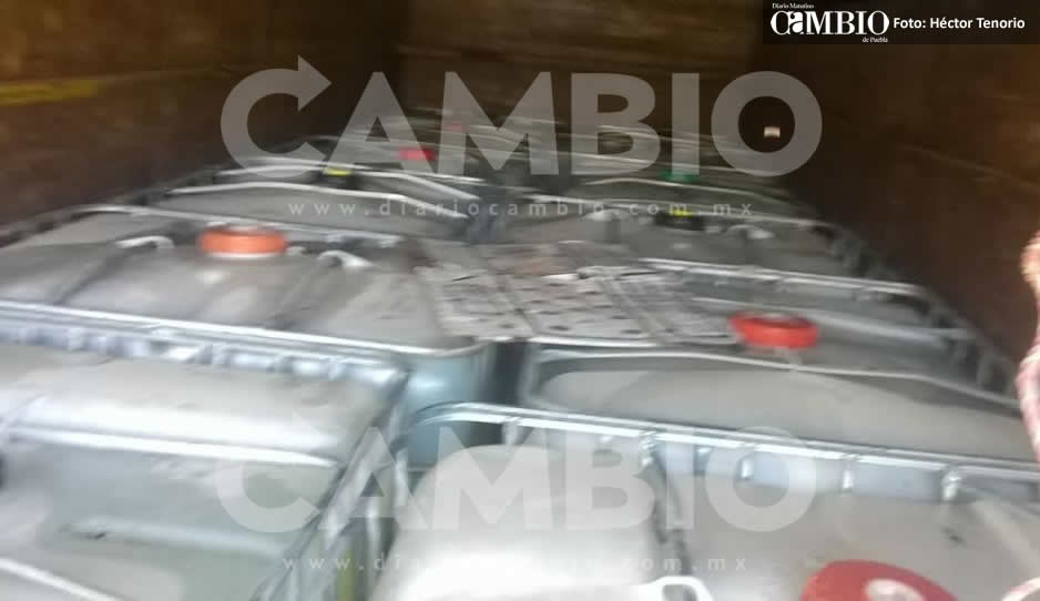 Los dos camiones asegurados que transportaban combustible sustraído de los ductos de Petróleos Mexicanos son un Kenworth con placas de circulación XB66486 del estado de Tlaxcala con 12 contenedores y un International color negro con metálicas XB71902.