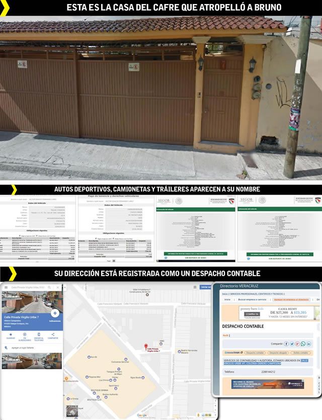 Héctor Ignacio Fernández López, propietario del vehículo Golf que atropelló al universitario poblano Luis Enrique Bruno Vázquez y se dio a la fuga, figura en el registro vehicular de Veracruz con 10 unidades que en conjunto tienen un valor comercial superior a los 3 millones de pesos, incluyendo coches deportivos, camionetas y tractocamiones.