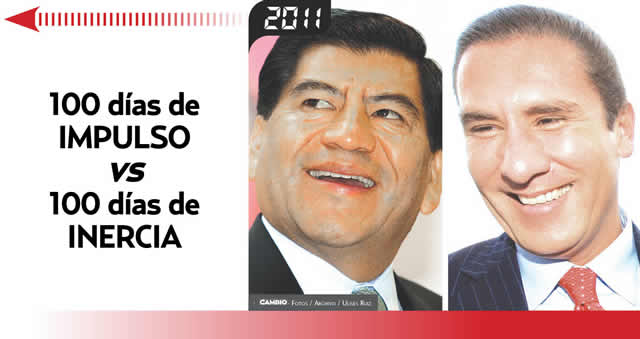 Los primeros cien días de las administraciones de Mario Marín Torres y Rafael Moreno Valle ponen en evidencia los estilos personales de ejercer el poder y ser gobierno. Mientras el primer tramo del marinismo estuvo caracterizado por la poca planeación y la repetición de promesas de campaña; los cien días del morenovallismo se han caracterizado por todo lo contrario: la ejecución y lanzamiento de programas, licitaciones de obra de gran envergadura y firma de convenios para traer más recursos.