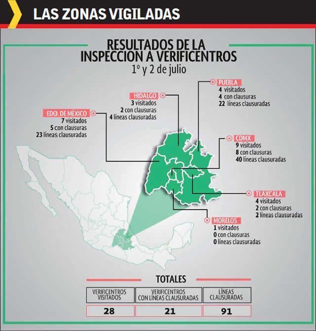 Por la misma razón fueron cerrados 21 centros de 28 inspeccionados en las seis entidades federativas que conforman la Megalópolis: Puebla, Morelos, Tlaxcala, Ciudad de México, Estado de México e Hidalgo con un total de 91 líneas.