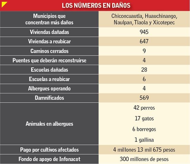 El municipio de Chiconcuautla es el más afectado, pues ahí se ocupará el 35 por ciento del importe de daños.