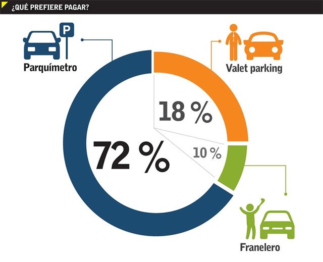 En la misma presentación, en el apartado de los resultados de la prueba piloto, se plantea la siguiente pregunta: “¿Qué prefieres pagar?”, en la cual, el 72 por ciento (144 personas) afirmaron que prefieren un sistema de parquímetros al franelero o valet parking.