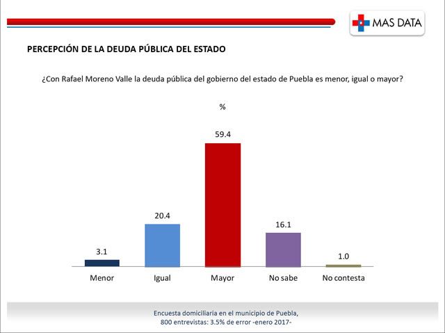La oscuridad del gobierno estatal, a lo largo del sexenio, para explicar el mecanismo de funcionamiento de los PPS provocó que las acusaciones de endeudamiento fueran aceptadas por 6 de cada 10 poblanos, quienes creen que la deuda pública se incrementó notablemente durante este sexenio.