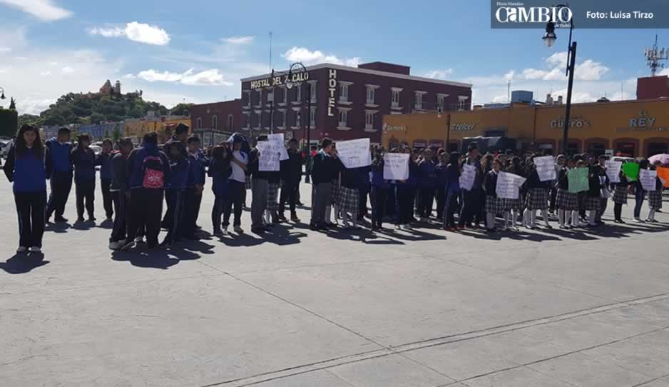 Los antorchistas utilizaron a poco más de 20 estudiantes del Telebachillerato Comunitario 89, para unirse a sus protestas y exigir la realización de dicha obra supuestamente gestionada con recursos de la diputada Soraya Córdova.