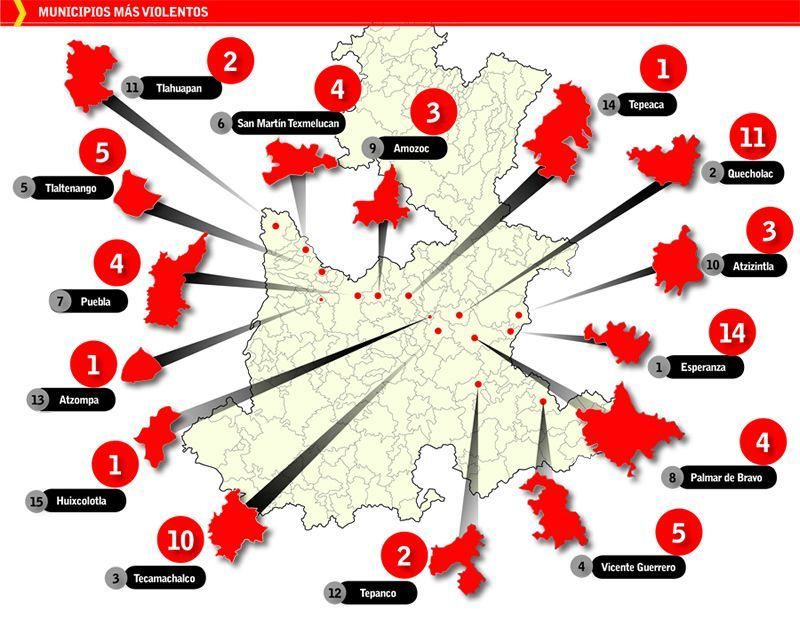 De acuerdo con el recuento realizado por CAMBIO, en el tercer lugar se encuentra Tecamachalco con 10 ejecuciones relacionadas con estas bandas, a pesar de que sólo es un municipio de paso.