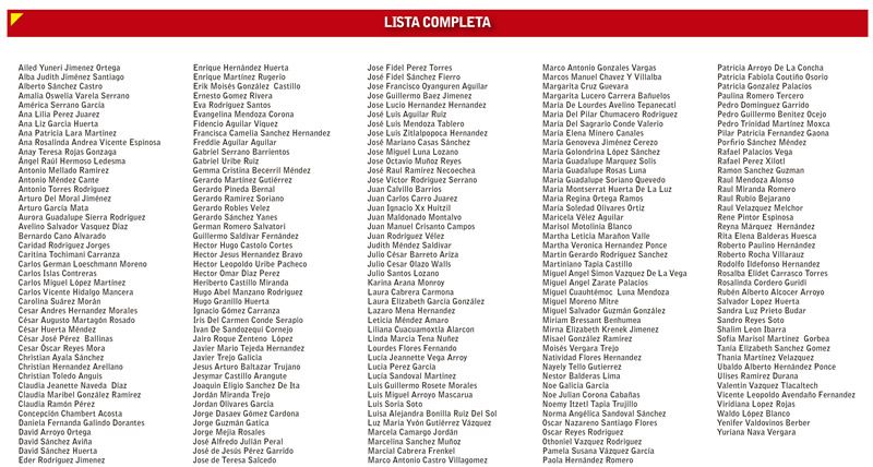 En total fueron 212 los aspirantes incluidos en esta primera lista para reemplazar, a partir del próximo 3 de noviembre, a los integrantes del Consejo General: Claudia Rodríguez Barbosa, Flor de Té Rodríguez Salazar y Federico González Magaña.