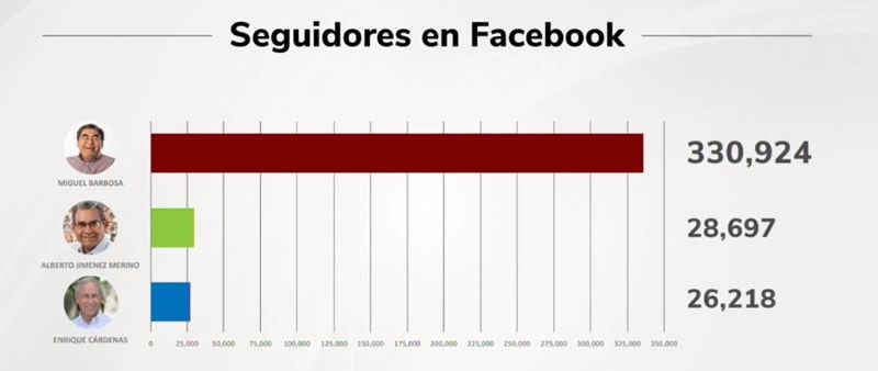 En cuanto a Enrique Cárdenas, no logró posicionarse por más de cinco minutos, siendo el hashtag de su equipo de campaña #BarbosaNoEsdeFiar, generando un alcance de 886 mil 602 usuarios.