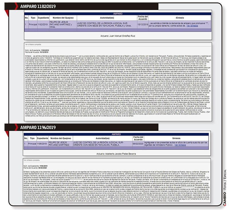 De acuerdo con el primer amparo, cuyo número de juicio es el 1182/2019, y cuyo expediente está residido en el Juzgado Primero de Distrito en Amparo Penal, son llamados a comparecer los tres funcionarios públicos que han sido señalados por ser enviados del Gobierno del Estado.