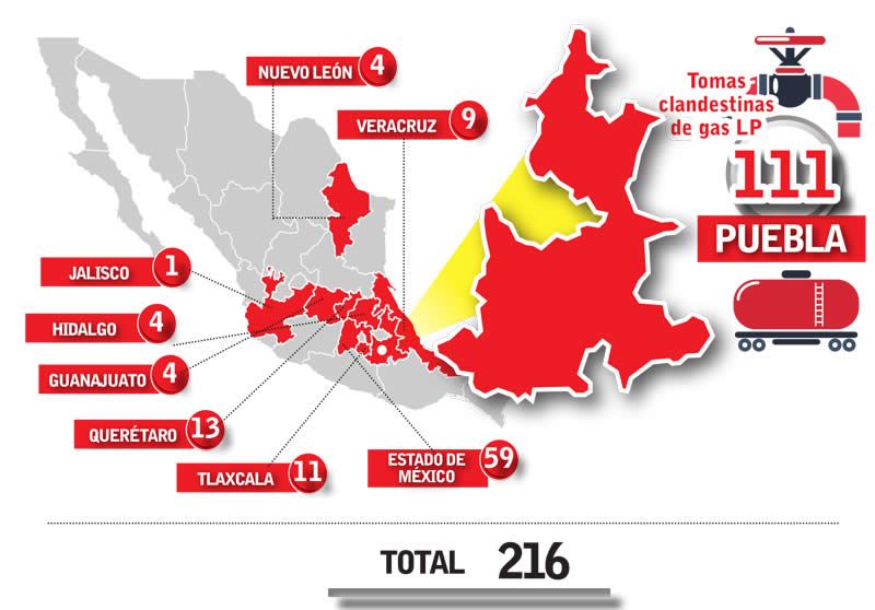 Esto debido a que en gran parte de los municipios que conforman el Triángulo Rojo ha ido disminuyendo el robo de hidrocarburos, sin embargo, en Tepeaca ha ido al alza el robo de gas LP.