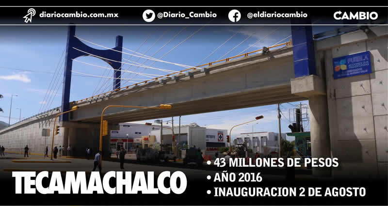 El distribuidor vial del municipio de Tecamachalco fue inaugurado el 2 de agosto de 2016, está ubicado en la 9 Oriente y la 16 Sur de dicha zona y tuvo una inversión de 43 millones de pesos, siendo el de menor costo de la administración morenovallista.