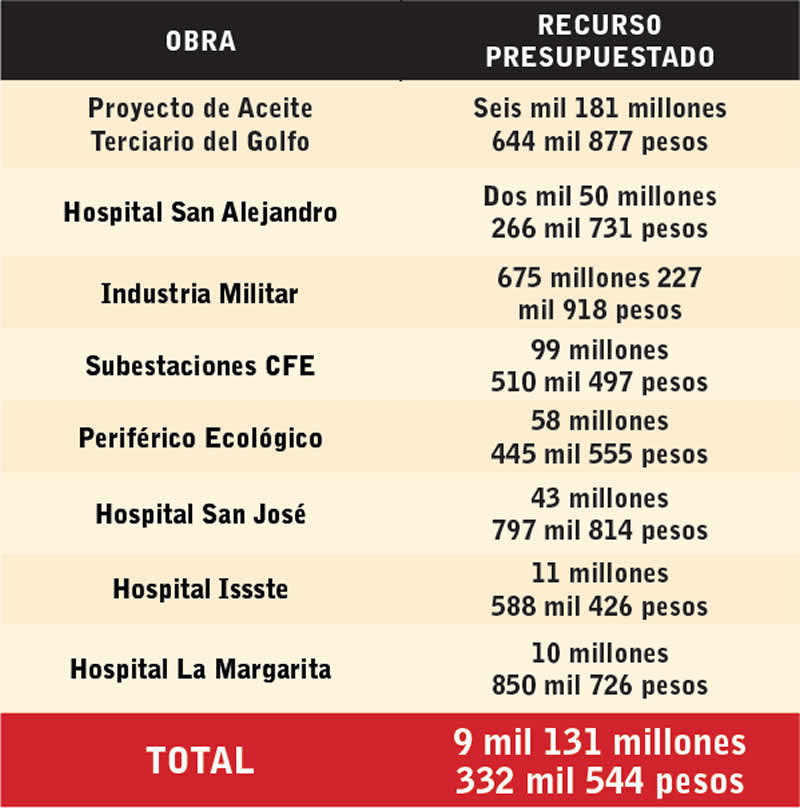 La mayor inversión directa a la entidad se realizará a través del Instituto Mexicano del Seguro Social (IMSS), pues para la reconstrucción del Hospital de San Alejandro se contempló un presupuesto total de dos mil 50 millones 266 mil 731 pesos.
