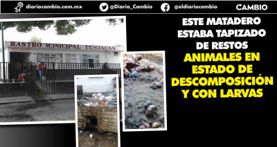 En condiciones totalmente insalubres, con desechos cárnicos tirados en el piso y hasta con gusanos, así opera el Rastro Municipal de Tehuacán.