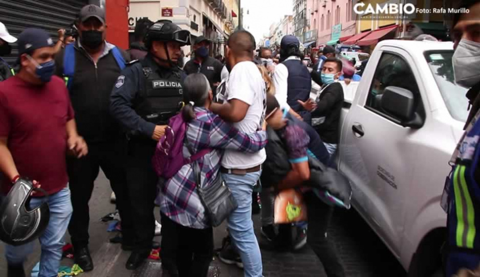 Los vendedores fueron retirados de la 5 de Mayo y 8 Oriente- Poniente a través de un operativo en el que participaron agentes de la Secretaría de Seguridad Ciudadana (SSC).