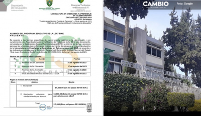 A través de un comunicado expusieron que si no saldan los 7 mil pesos de reinscripción perderán su lugar dentro de la licenciatura impartida en el Benemérito Instituto Normal del Estado de Puebla.