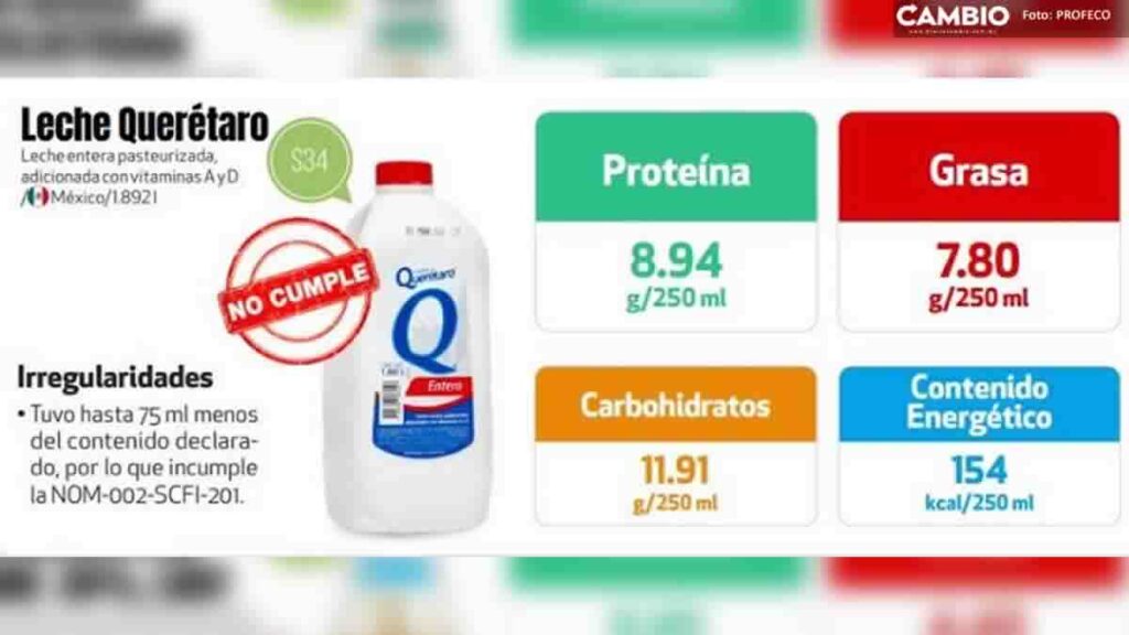 La Profeco expuso a Leche Querétaro por no cumplir con la cantidad declarada en su envase, y va en contra de las regulaciones establecidas.