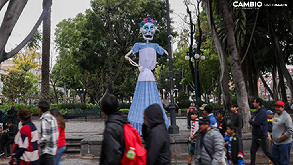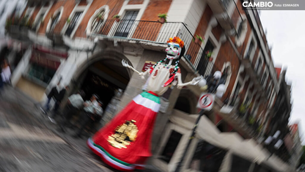 Catrinas monumentales “invadieron” y llenaron de folclor la calle 16 de Septiembre del Centro Histórico de Puebla, como parte del festival “La Muerte es un Sueño” del Ayuntamiento de Puebla.