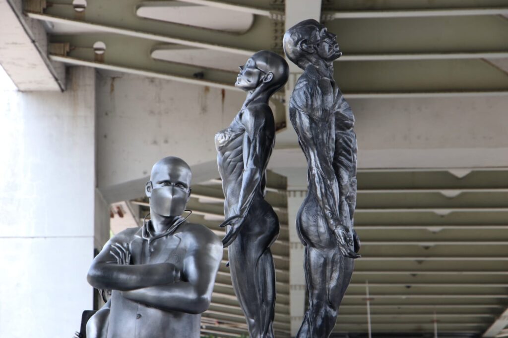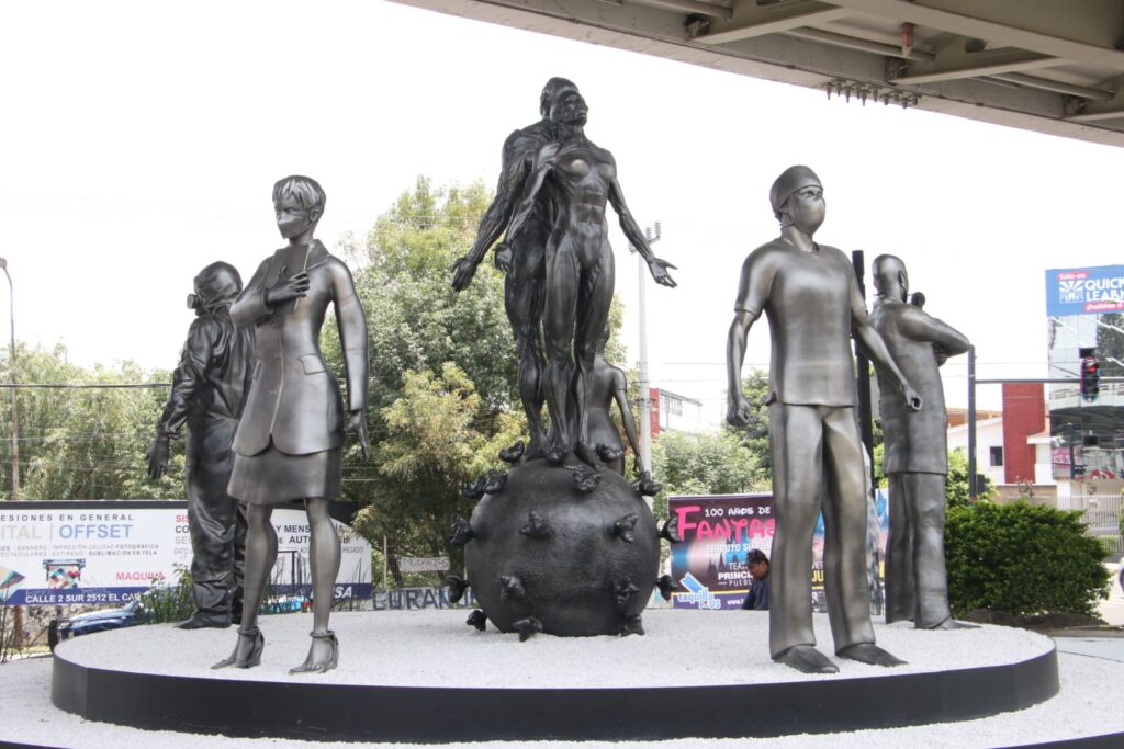Dicho monumento consiste en cinco figuras de doctores con sus insumos médicos alrededor del busto del virus, en homenaje a su labor durante los más de dos años que duró la pandemia.