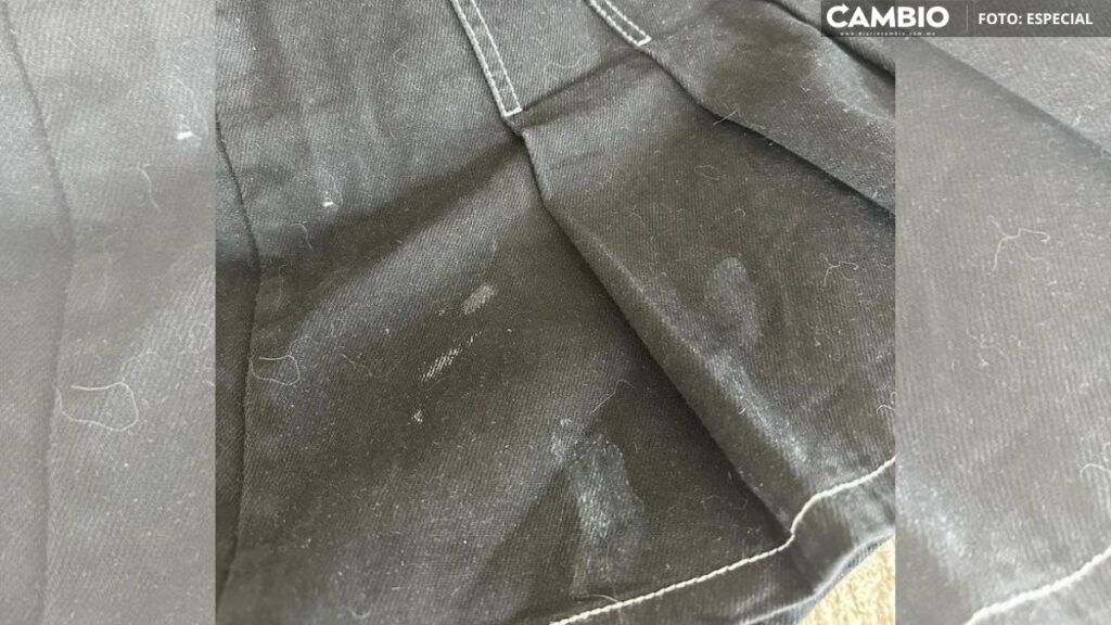 Cuando la alcanzó, le metió mano y eyaculó encima de ella, por lo que sus fluidos quedaron esparcidos por su falda.