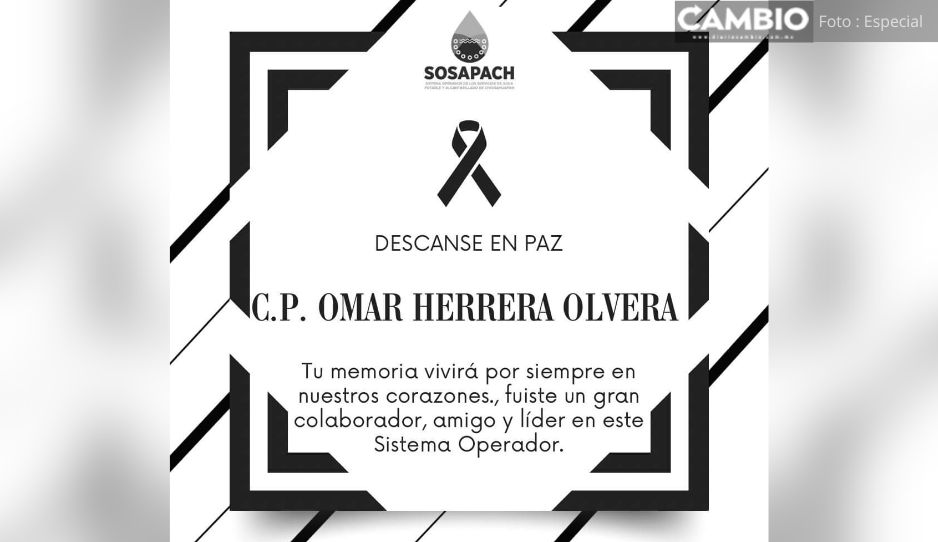 “Nos unimos a la pena que embarga a las familias Herrera Olvera y Herrera Reyes por el sensible fallecimiento de quien fuera nuestro amigo, colaborador y excelente líder C.P. Omar Herrera Olvera”, indicaron los trabajadores del Sosapach.