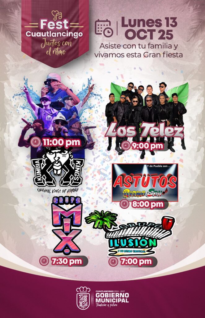 El evento forma parte del Fest Cuautlancingo, denominado “Juntos con el ritmo”, y se realizará el lunes 13 de octubre de 2025 en la explanada de la presidencia municipal.