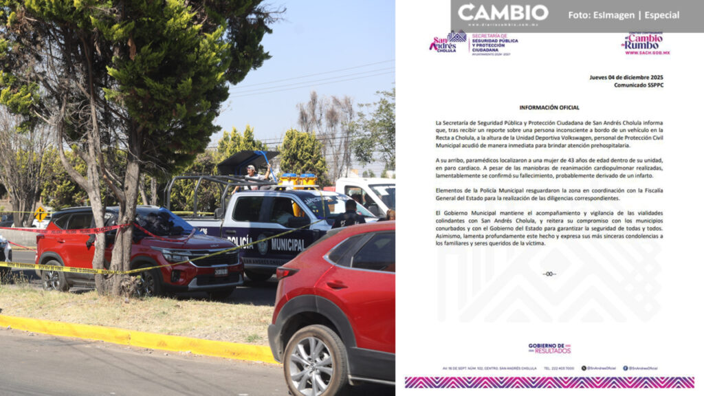 Personal de Protección Civil Municipal de San Andrés Cholula acudió al punto y, al revisar a la mujer, confirmaron que se encontraba en paro cardiaco. A pesar de las maniobras de reanimación que se le aplicaron, se determinó su fallecimiento en el lugar.