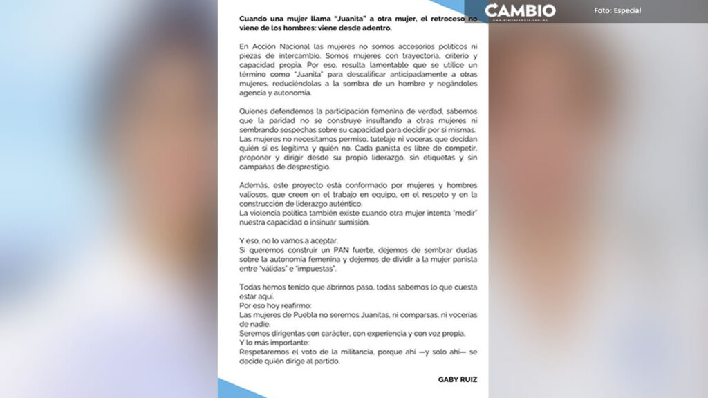 Ante esto, la posible aspirante a la dirigencia municipal, Gabriela Ruiz Benítez publicó un posicionamiento en el que lamentó el uso de ese término para referirse a otras militantes.