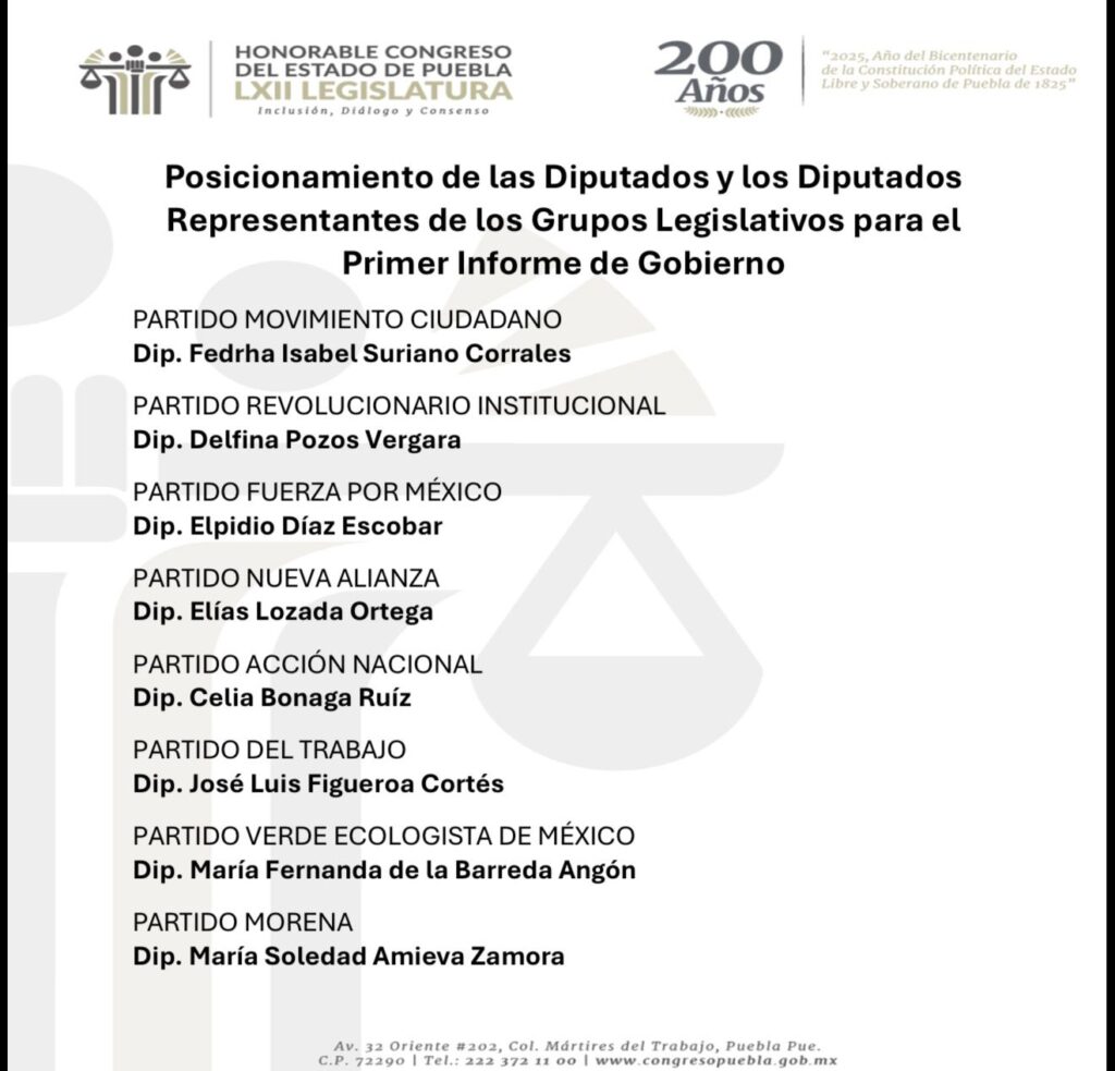De acuerdo con el orden del día aprobado, después del pase de lista, honores a la Bandera y la designación de la Comisión de Cortesía, iniciará la ronda de posicionamientos de los grupos y representaciones legislativas, momento en el que cada bancada fijará su postura sobre el primer año de gestión del mandatario estatal.
