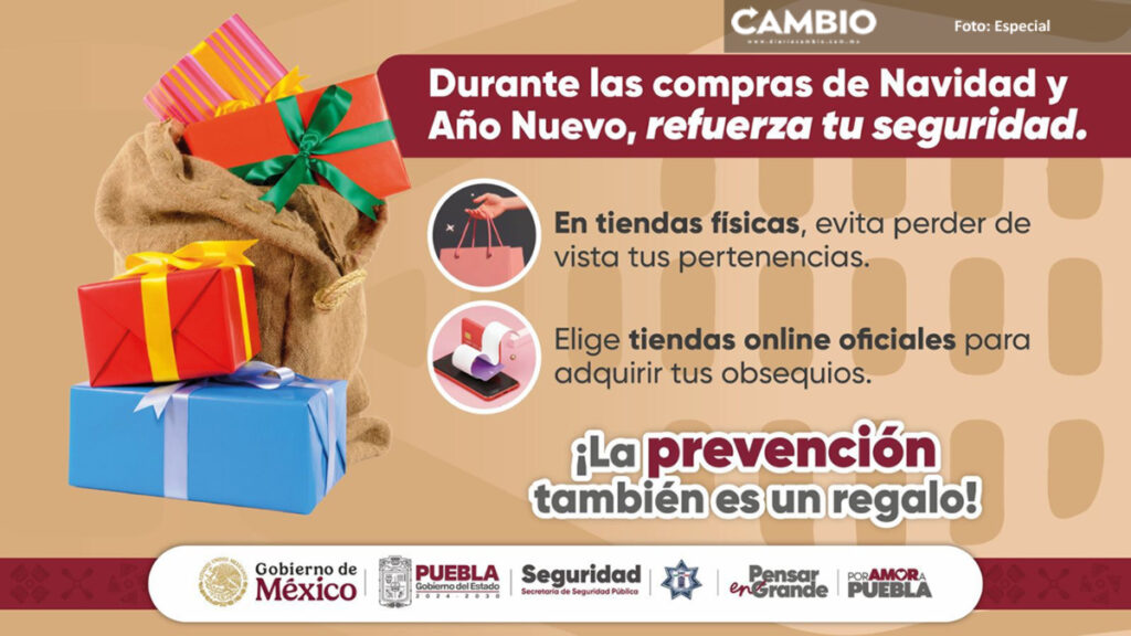 La SSP exhortó a los poblanos que acudan a centros comerciales, tiendas departamentales, de autoservicio y otros establecimientos, a no perder de vista sus pertenencias, evitar portar grandes cantidades de dinero en efectivo y, en la medida de lo posible, utilizar medios de pago electrónicos.