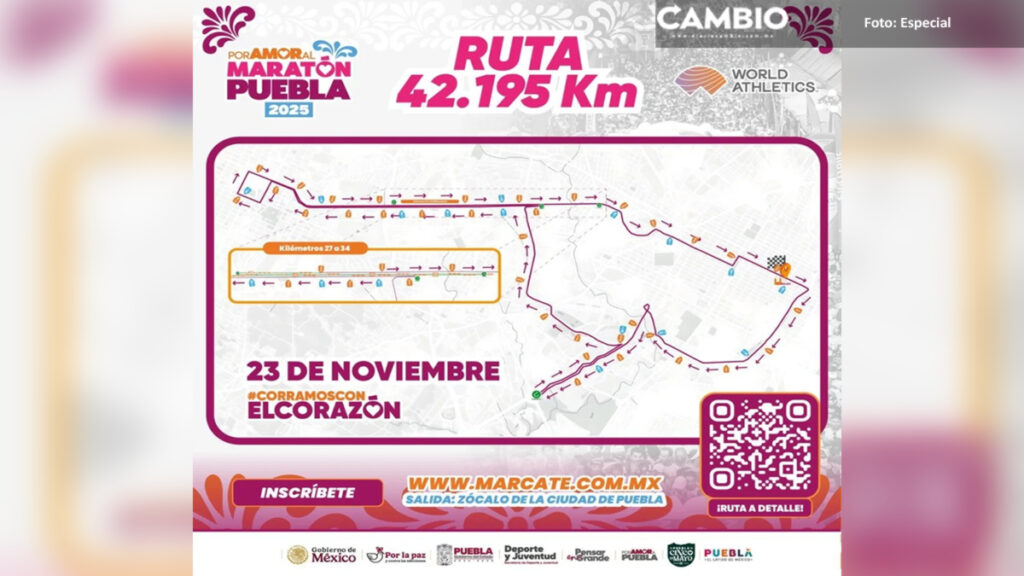 En la carrera “Por Amor a Puebla Maratón 2025” podrán participar todos los poblanos que lo deseen, ya que los 5 y 10 kilómetros tienen fines recreativos y les permitirá correr al lado de competidores de alto rendimiento, quienes cubrirán las distancias más largas de 21 y 42.195 kilómetros. En DIARIO CAMBIO te damos a conocer el trayecto que se seguirá en cada una de las cuatro distancias de esta competencia que se realizará el próximo 23 de noviembre.