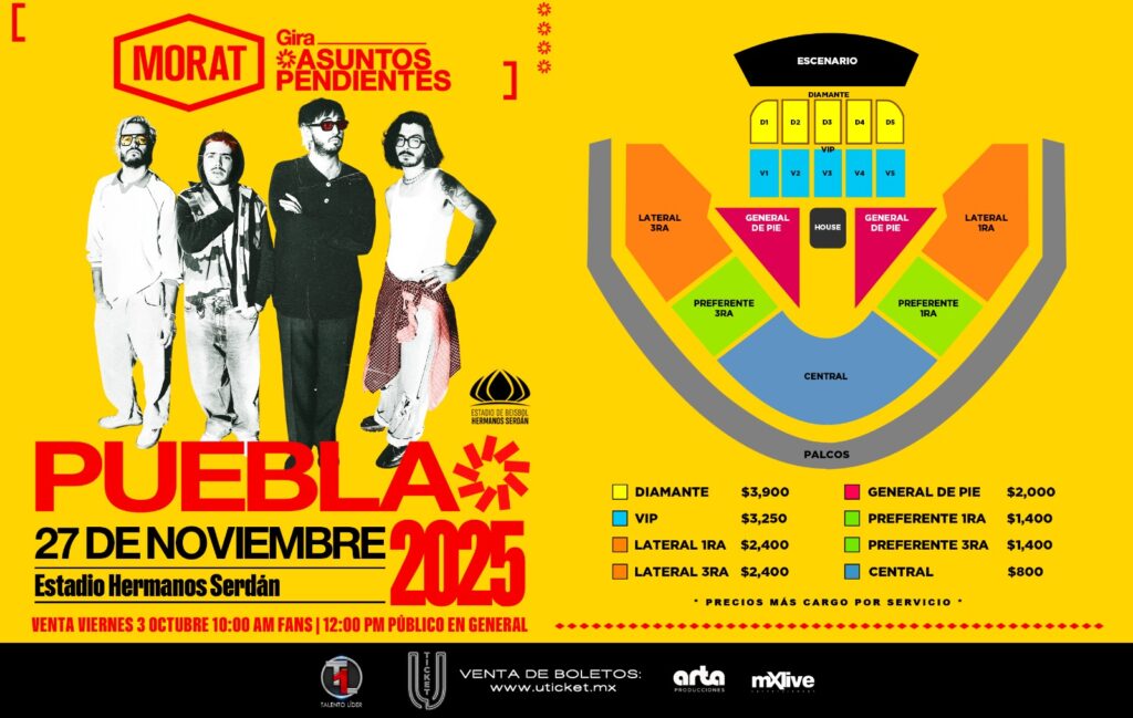 La reconocida banda colombiana Morat, una de las agrupaciones más queridas en el panorama musical latinoamericano, ha anunciado que se presentará en Puebla el próximo 27 de noviembre de 2025, el escenario elegido será el Estadio de Béisbol Hermanos Serdán.